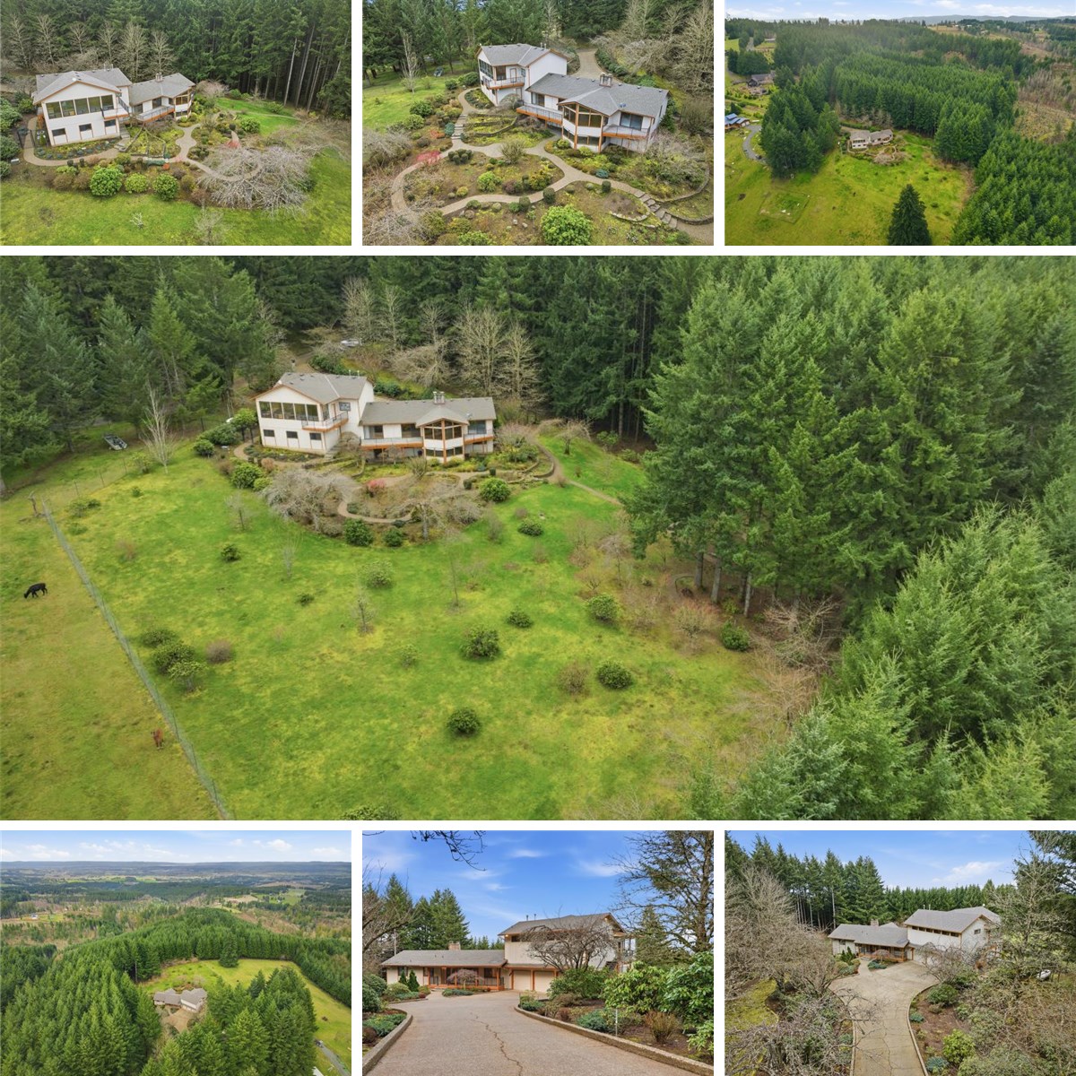 Beautifully maintained by its original owner, this three-story daylight basement home sits atop Chehalem Mountain in the heart of Yamhill County wine country. Enjoy stunning views of Mt Hood along with partial views of Mt. St. Helens, Mt. Rainier and Mt. Adams. Built in 1977 on 6.47 acres, the home offers approximately 3,020 sq ft of living space, plus an additional 1,334 sq ft of flex space above the 3-bay oversized garage. The flex space is perfect for an art studio, remote work, gym or guest space. Interior features include main level living, hardwood floors, vaulted beamed ceilings, multiple fireplaces including a dramatic floor-to-ceiling stone fireplace, a spacious primary suite and central vac system. The cherry wood kitchen opens to a formal dining room, ideal for entertaining. The lower level includes three bedrooms, a full bath, family room, dark room and laundry. The various decks invite you to relax and enjoy peaceful privacy, beautiful mature landscaping and fenced gardens. A workshop which can be accessed in the garage adds functionality for hobbies or projects. Conveniently located just 15 minutes to Newberg, 20 minutes to the Hillsboro High Tech Corridor, numerous wineries, restaurants and all that Oregon wine country has to offer. This exceptional property blends privacy, views and so much versatility. Schedule a showing today.